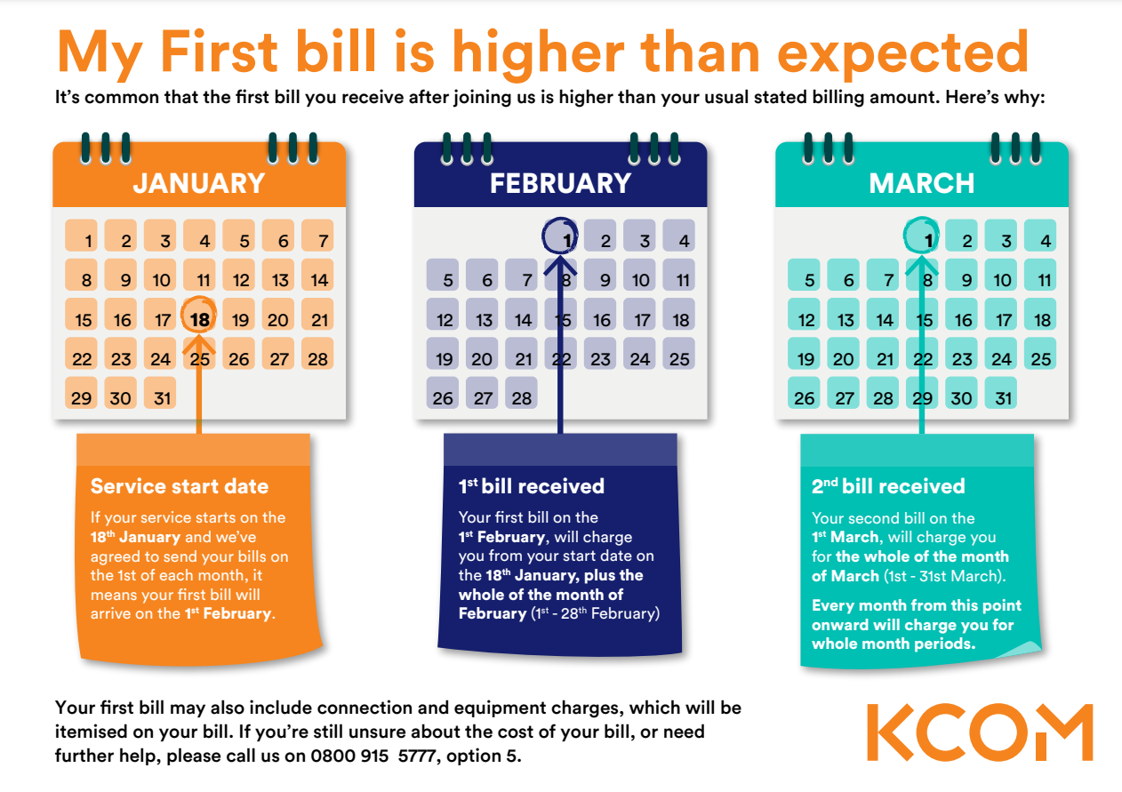 It's common that the first bill you receive after joining us is higher than the stated monthly amount you may have seen on our website. Here's why.