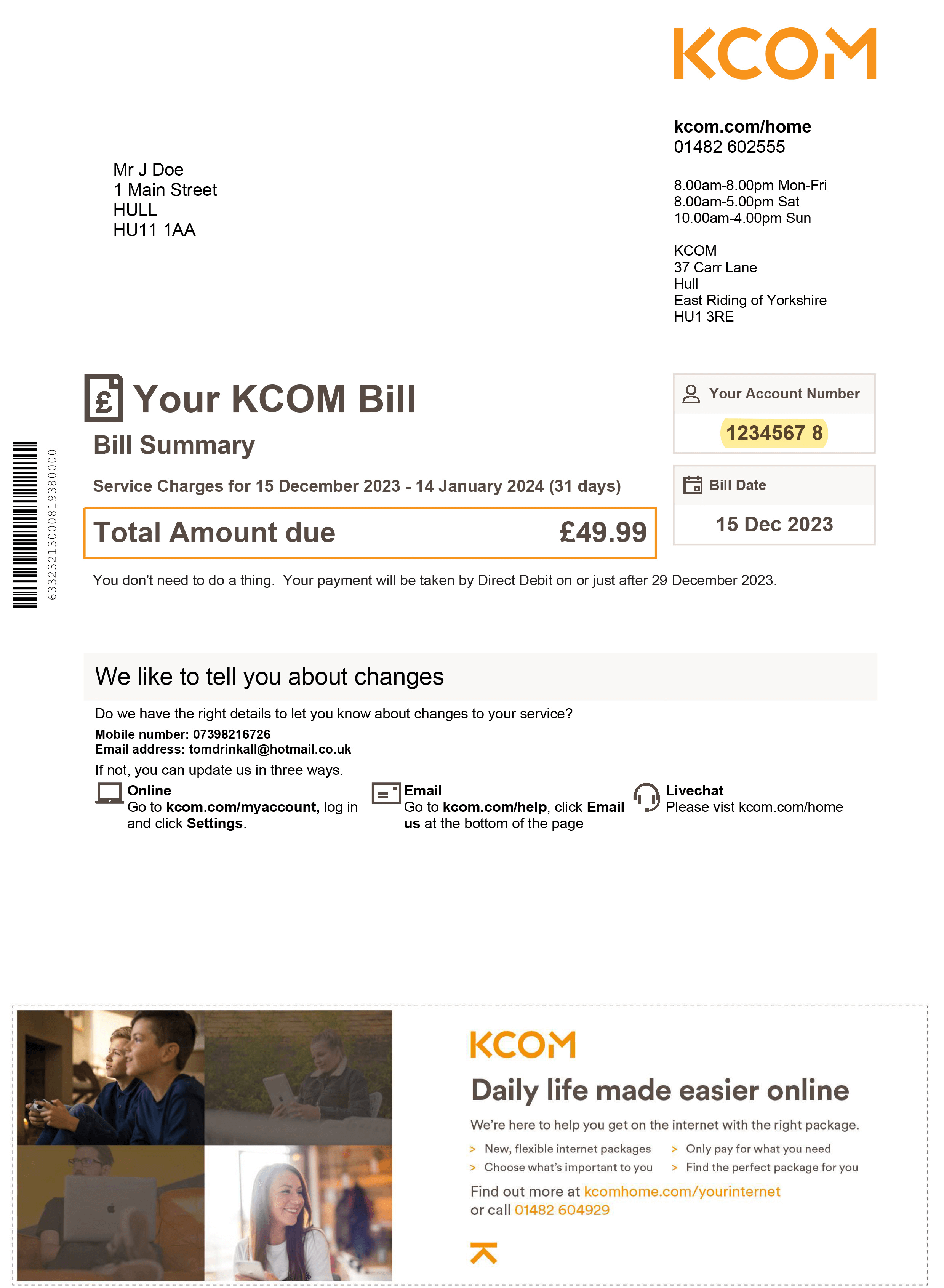 No problem. If you can't access it through My KCOM or find a copy of your bill, reach out to us via our Contact us page.