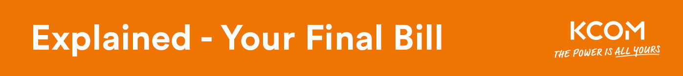 Your final bill is a bill that you would receive outside your normal billing cycle that details your final account status when moving home or leaving KCOM. this means you may end up with a credit for services you have paid for but also you may end up with a final balance to pay, this bill will detail all the charges for you and what is owed to you or us.