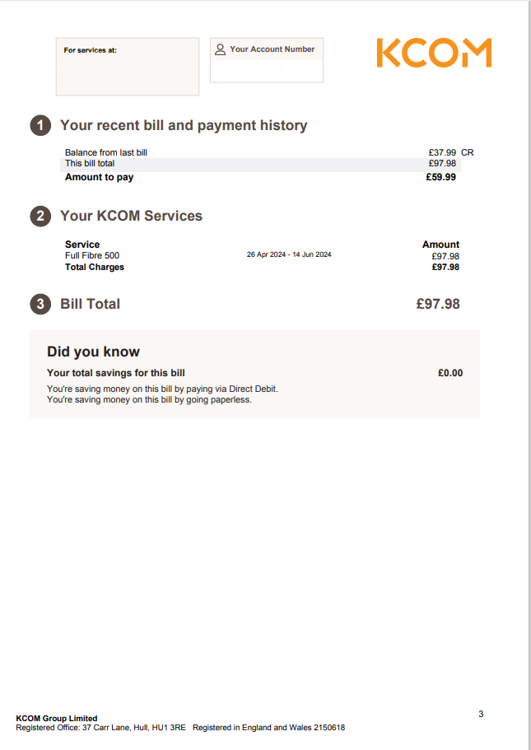 - For example: If you are usually billed £40 each month then we migrated you to a Full Fibre account which puts a credit of £15 on the old account, when the new account starts billing, the first bill will be £55 and that £15 credit will cover for what looks like an extra charge. You will then go ahead with the usual payment of £40. Although you will see a bill for £55 but on same bill, it will show amount due for payment as £40 because the £15 credit has taken care of the extra charges.